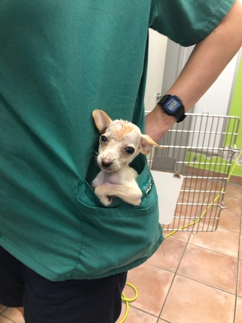 J’ai pris contact avec le seul refuge de Grenade au début de la quarantaine, ils m’ont tout de suite répondu que « Baby Roo » semblait correspondre à ma recherche, même s’ils ne pouvaient prédire quelle serait sa taille adulte.